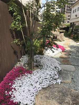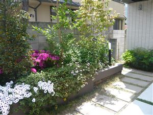 左写真 つつじ 右写真 左から オステオスペルマム つつじ ローダンセマム